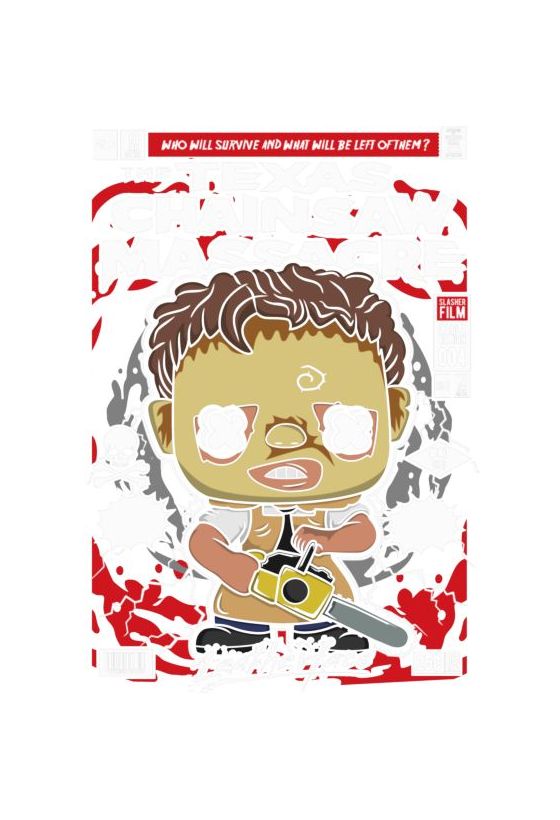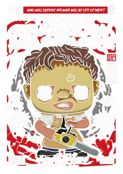 Funko Pop Leatherface με αλυσοπρίονο, κόμικ στυλ τρόμου.
