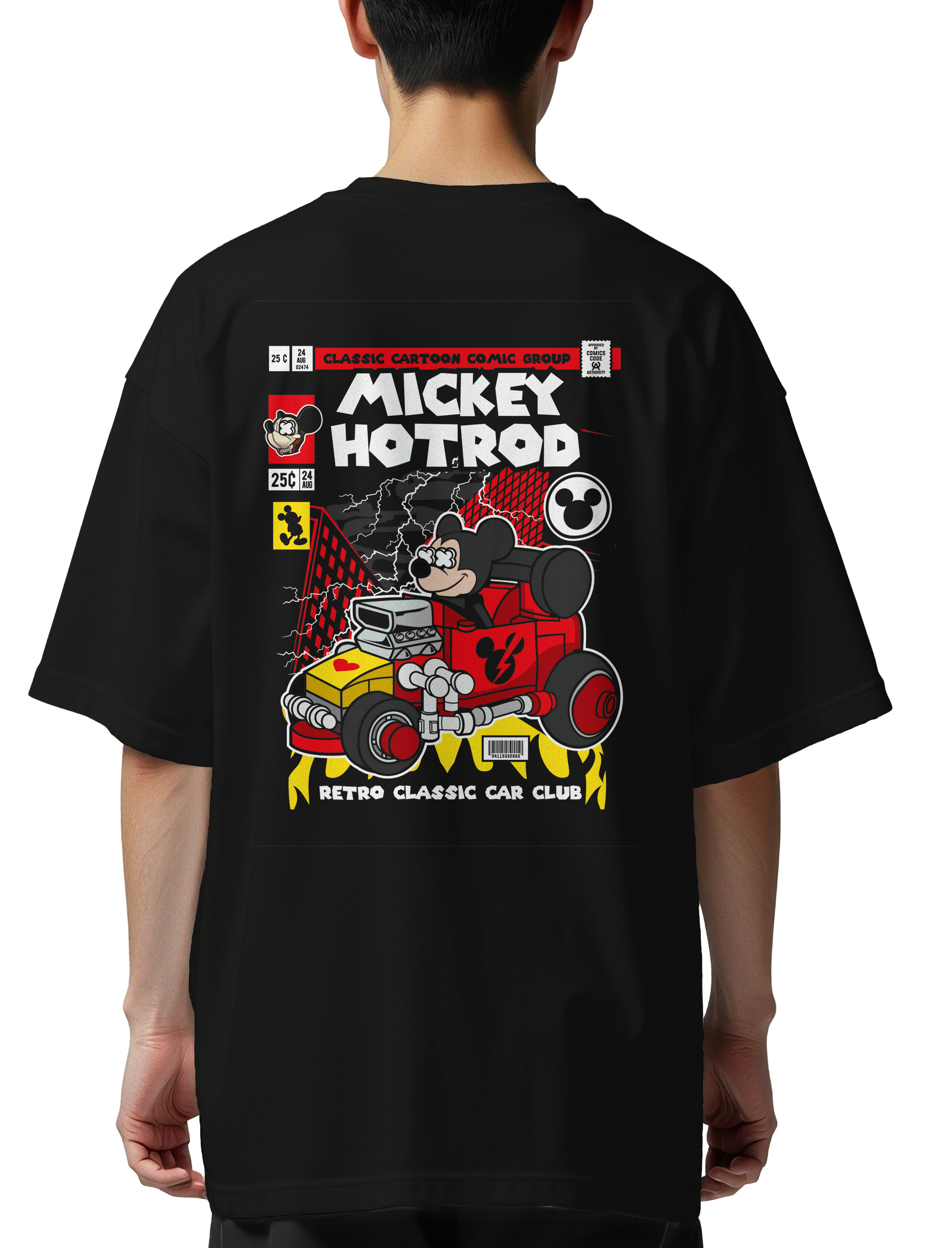 Oversized T-Shirt Mickey Hot Rod Pop Culture Black