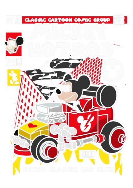 Mickey Mouse σε κόκκινο hot rod, εξώφυλλο κόμικ "Mickey Hotrod".