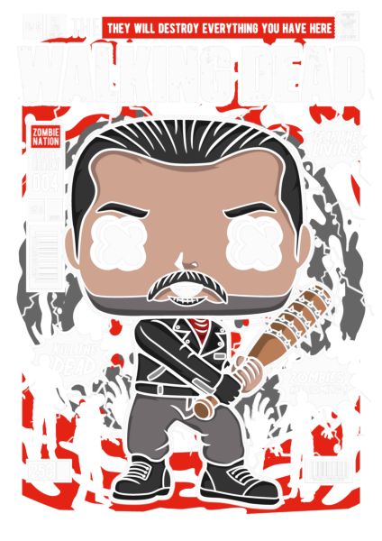 Ρετρό εξώφυλλο κόμικ με τον Negan από το Walking Dead σε στυλ Funko Pop, με το μπαστούνι Lucille.