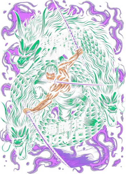 Roronoa Zoro με τρία σπαθιά και τρεις πράσινους δράκους, One Piece.