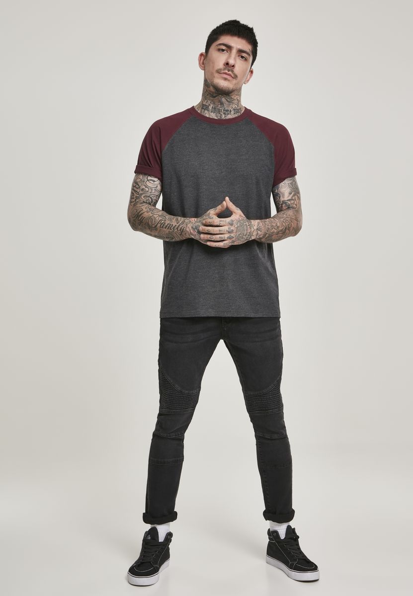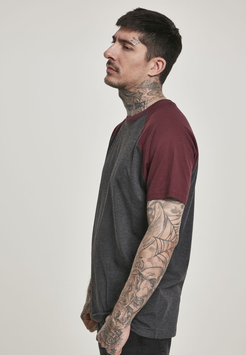 T-Shirt Raglan Contrast Tee Urban Classics TB639 Charcoal/Burgundy