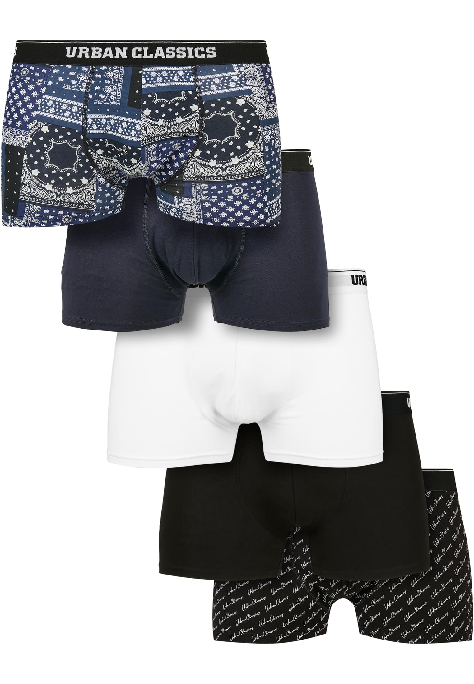 Organic Boxer Shorts 5-Pack UC Men TB4417 Bandana Navy/Navy/Navy/White/Black/Script Black