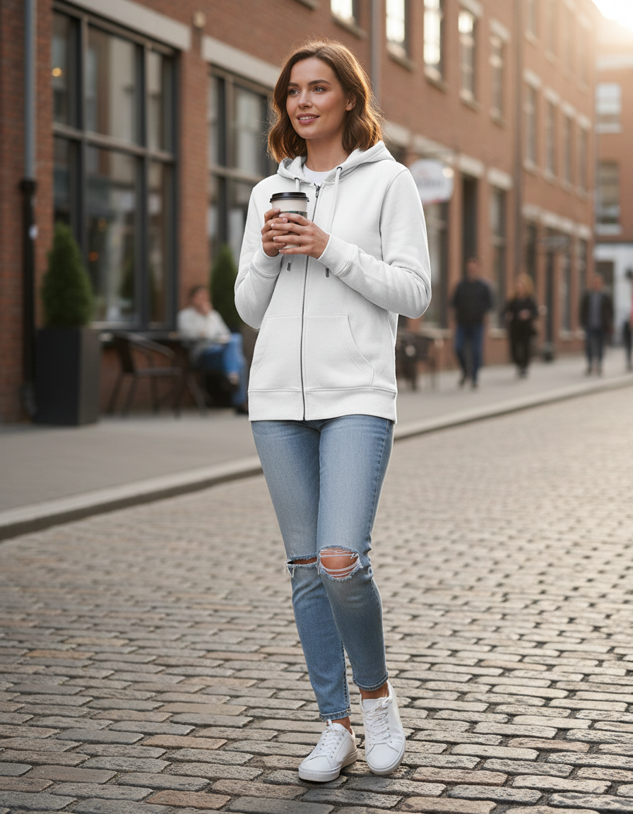 QUEEN Zip Hoodie Φούτερ B & C WW03Q White