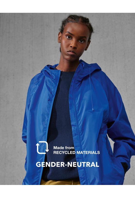 Unisex αντιανεμικό από 100% ανακυκλωμένο πολυεστέρα (πιστοποίηση RCS) με επένδυση σώματος από ανακυκλωμένο δίχτυ (mesh) πολυεστέρα και επένδυση μανικιών από ανακυκλωμένο πολυεστέρα. Διαθέτει υδροαπωθητική επίστρωση DWR χωρίς PFAS/φθόριο, σύμφωνα με το πρότυπο OEKO-TEX STANDARD 100 (Ιανουάριος 2024). Μοντέρνα εφαρμογή με επένδυση mesh για διαπνοή, ρυθμιζόμενη κουκούλα τριών τμημάτων με κορδόνι, ραγκλάν μανίκια για άνεση και ευκινησία, δύο μπροστινές τσέπες με φερμουάρ, ημιελαστικές μανσέτες και ρυθμιζόμενο στρίφωμα με κορδόνι για καλύτερη εφαρμογή.