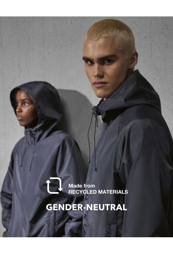 Unisex αντιανεμικό από 100% ανακυκλωμένο πολυεστέρα (πιστοποίηση RCS) με επένδυση σώματος από ανακυκλωμένο δίχτυ (mesh) πολυεστέρα και επένδυση μανικιών από ανακυκλωμένο πολυεστέρα. Διαθέτει υδροαπωθητική επίστρωση DWR χωρίς PFAS/φθόριο, σύμφωνα με το πρότυπο OEKO-TEX STANDARD 100 (Ιανουάριος 2024). Μοντέρνα εφαρμογή με επένδυση mesh για διαπνοή, ρυθμιζόμενη κουκούλα τριών τμημάτων με κορδόνι, ραγκλάν μανίκια για άνεση και ευκινησία, δύο μπροστινές τσέπες με φερμουάρ, ημιελαστικές μανσέτες και ρυθμιζόμενο στρίφωμα με κορδόνι για καλύτερη εφαρμογή.
