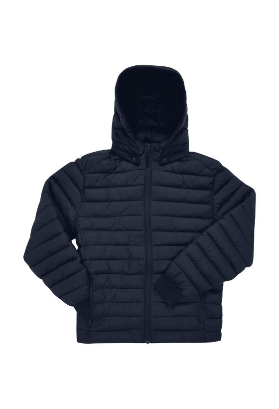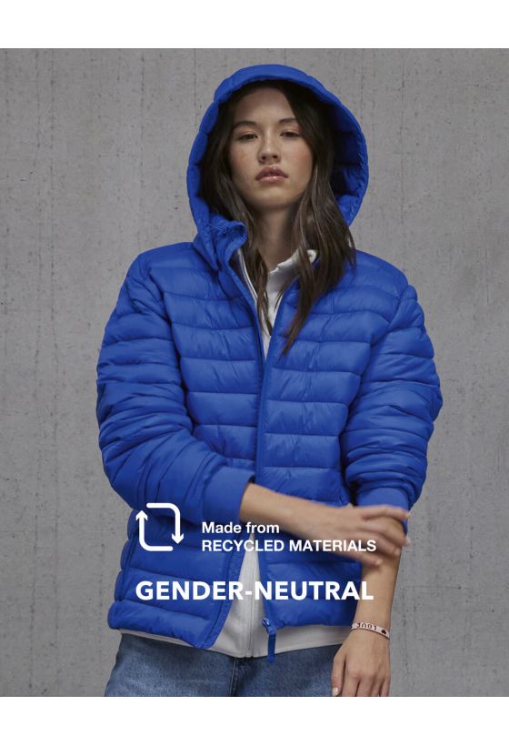 Unisex μπουφάν από 100% ανακυκλωμένο νάιλον (πιστοποίηση RCS) με επένδυση από 100% ανακυκλωμένο συνθετικό πούπουλο (fake down, RCS certified) και φόδρα από 100% ανακυκλωμένο νάιλον. Διαθέτει επίστρωση DWR (Durable Water Repellent) χωρίς PFAS/φθόριο, σύμφωνα με το πρότυπο OEKO-TEX STANDARD 100 (Ιανουάριος 2024). Προσφέρει ανάλαφρη αλλά θερμή μόνωση, αποσπώμενη και ρυθμιζόμενη κουκούλα με ψηλό επενδυμένο γιακά για προσαρμοσμένη προστασία, εσωτερική αντιανεμική πατιλέτα πλήρους μήκους και ριπ τελειώματα με ελαστάνη στα μανίκια για επιπλέον μόνωση. Διαθέτει δύο μπροστινές τσέπες με φερμουάρ.