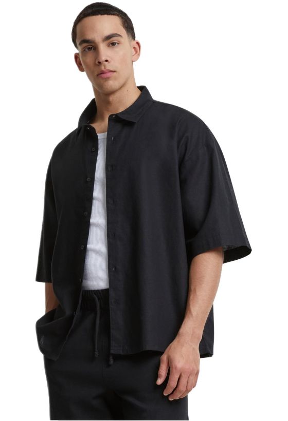 Boxy Cotton Linen Shirt Urban Classics TB6608-00007 black