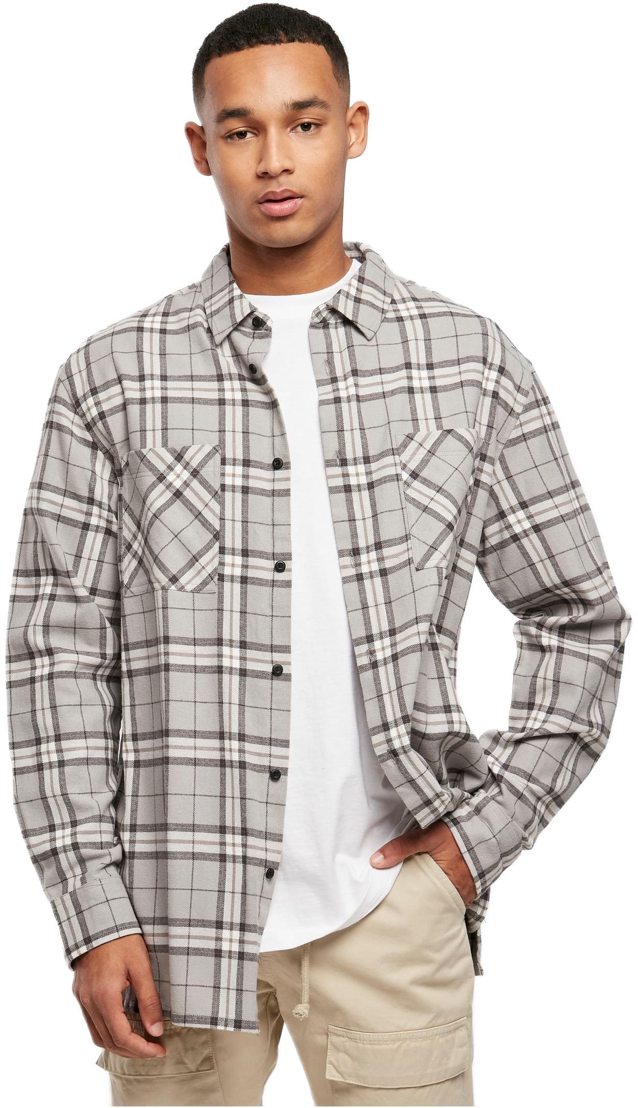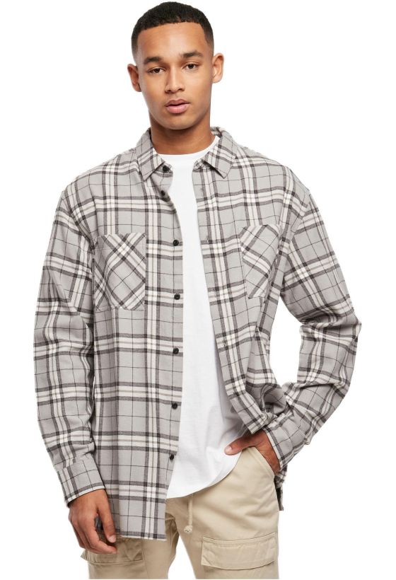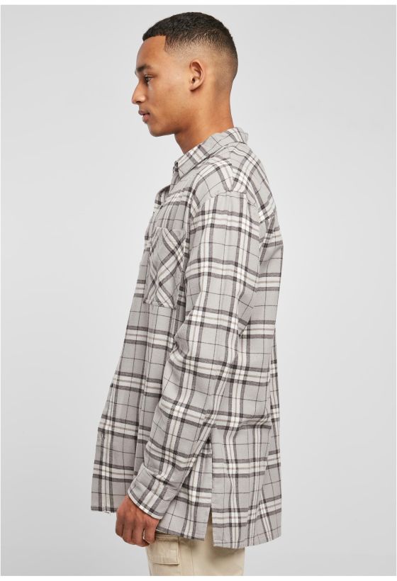 Long Oversized Grey Check Shirt Urban Classics TB5516-01239 grey/black