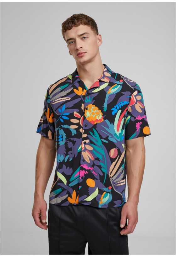 Viscose AOP Resort Shirt Urban Classics TB4150-03665 blackfruity
