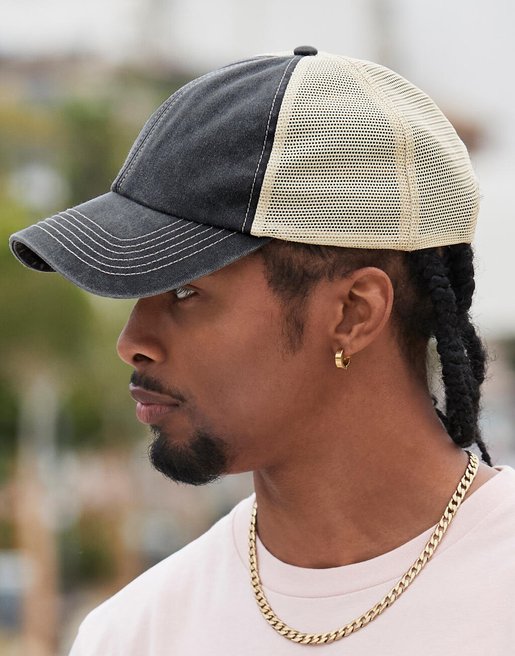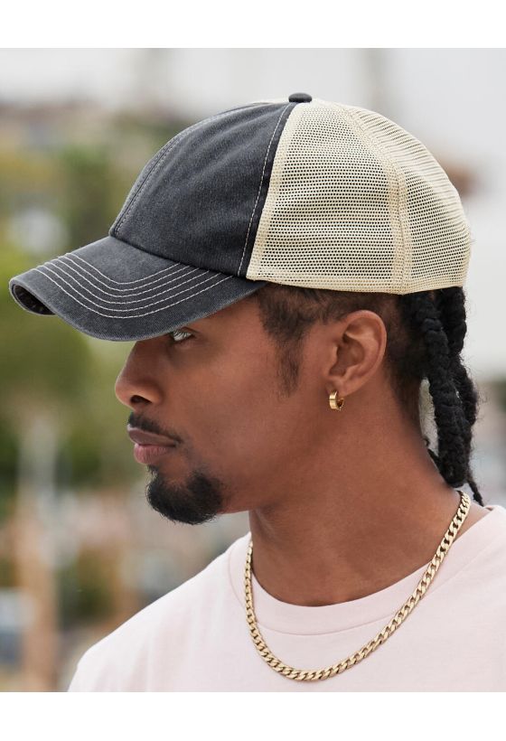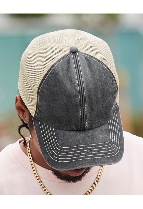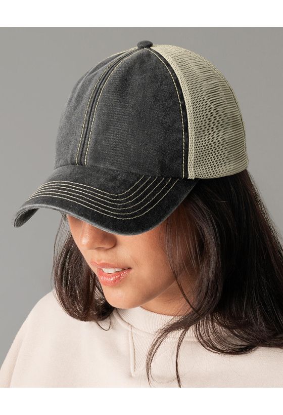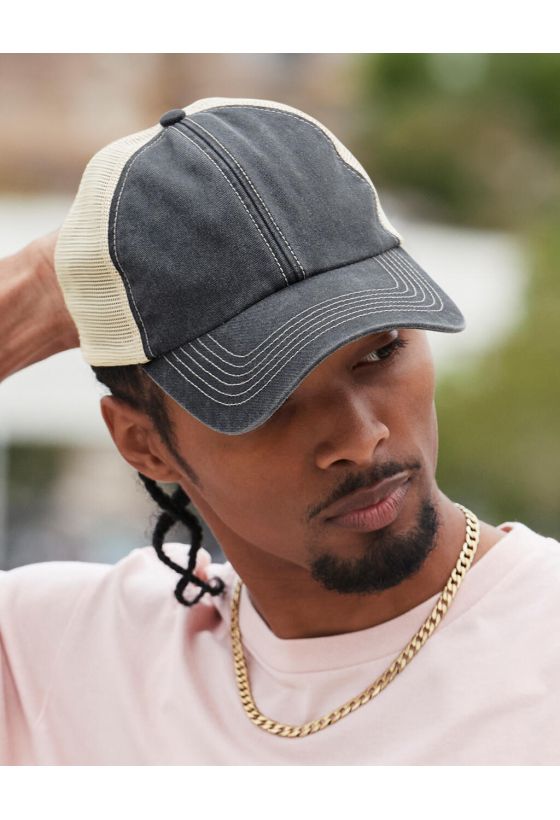 6 Panel Vintage Trucker Beechfield B672 Vintage Black/Stone
