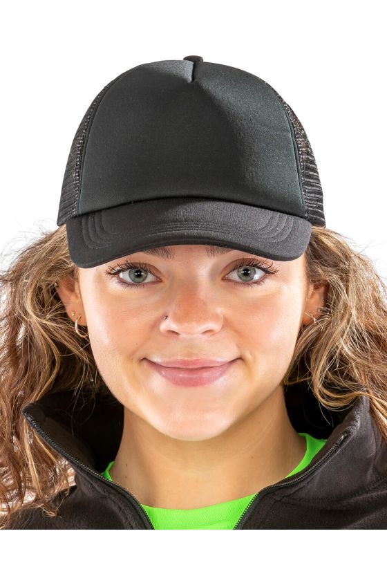 Detroit 1/2 Mesh Truckers Cap Result Headwear RC089X Black/Black