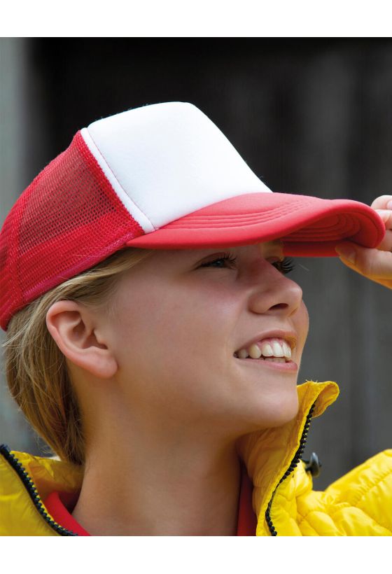 Detroit 1/2 Mesh Truckers Cap Result Headwear RC089X Red/White