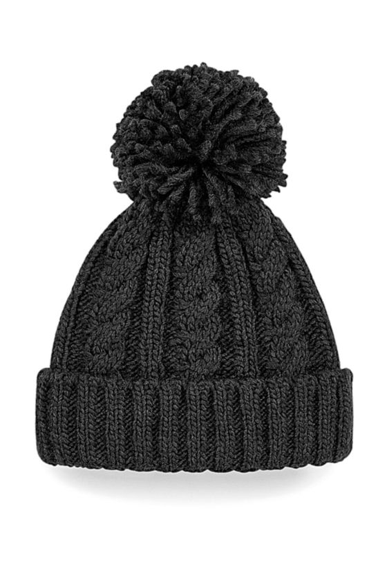 Cable Knit Melange Σκούφος με Πομ-Πομ Beechfield B480 Black