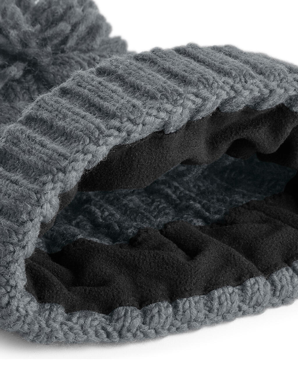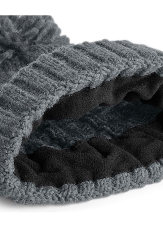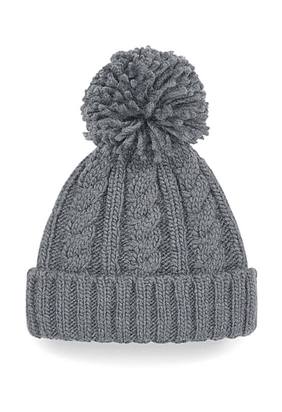 Cable Knit Melange Σκούφος με Πομ-Πομ Beechfield B480 Light Grey
