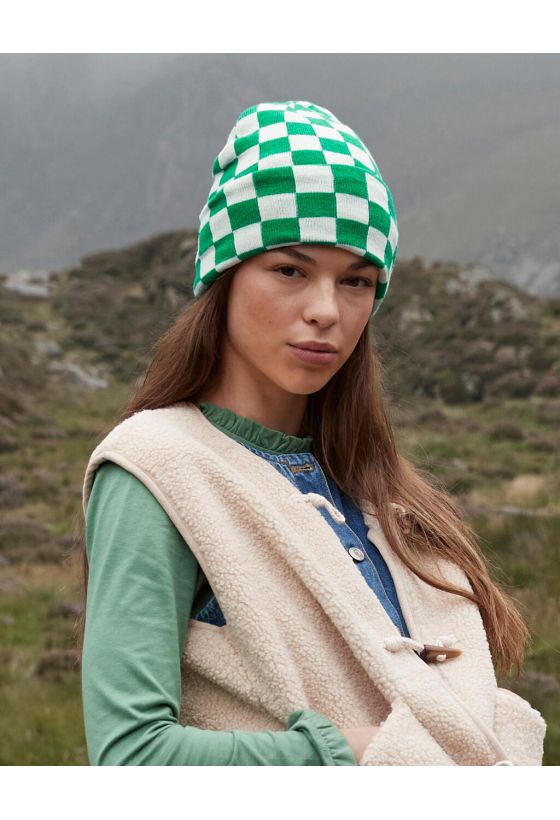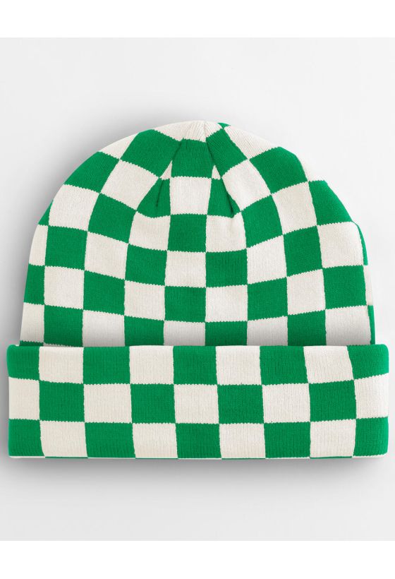Checkerboard Beanie Beechfield B531 Kelly Green/Off White