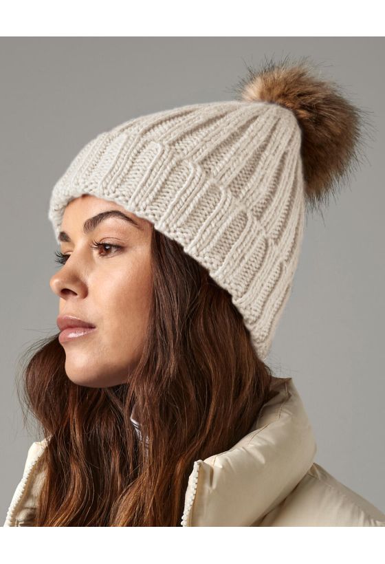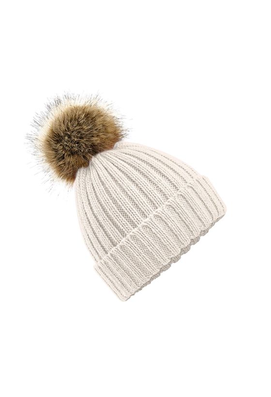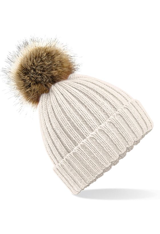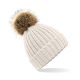 Fur Pop Pom Chunky Beanie Beechfield B412 Oatmeal