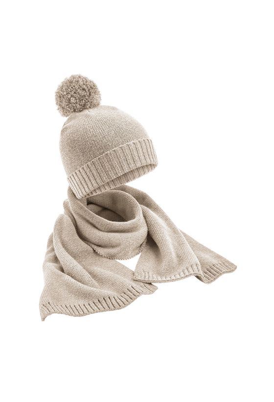 Knitted Scarf and Beanie Gift Set Beechfield B401 Oatmeal Fleck