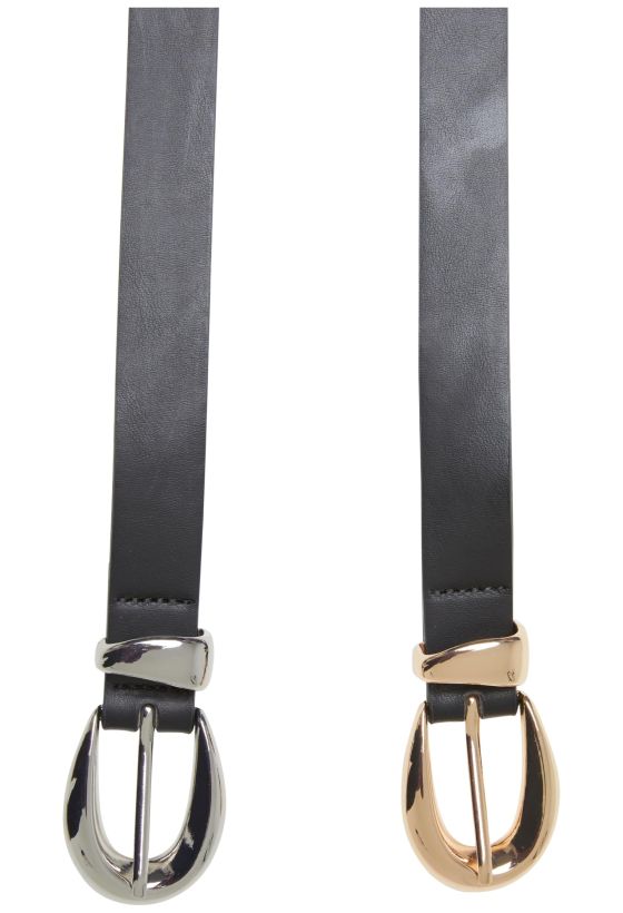 Chunky Buckle Loop Synthetic Leather Belt 2-Pack Urban Classics TB7211A-17832 black/gold+black/silver