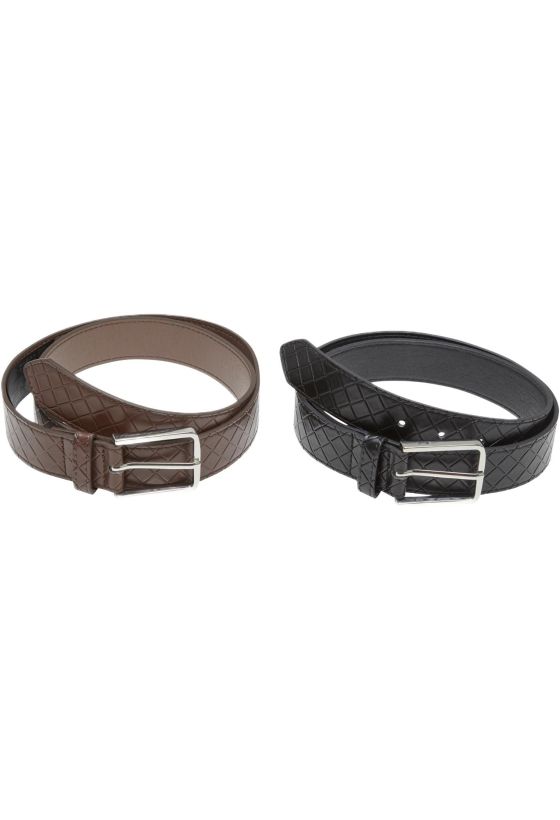 Woven Embossed Synthetic Leather Belt 2-Pack Urban Classics TB7217A-17831 black/silver+brown/silver