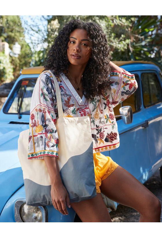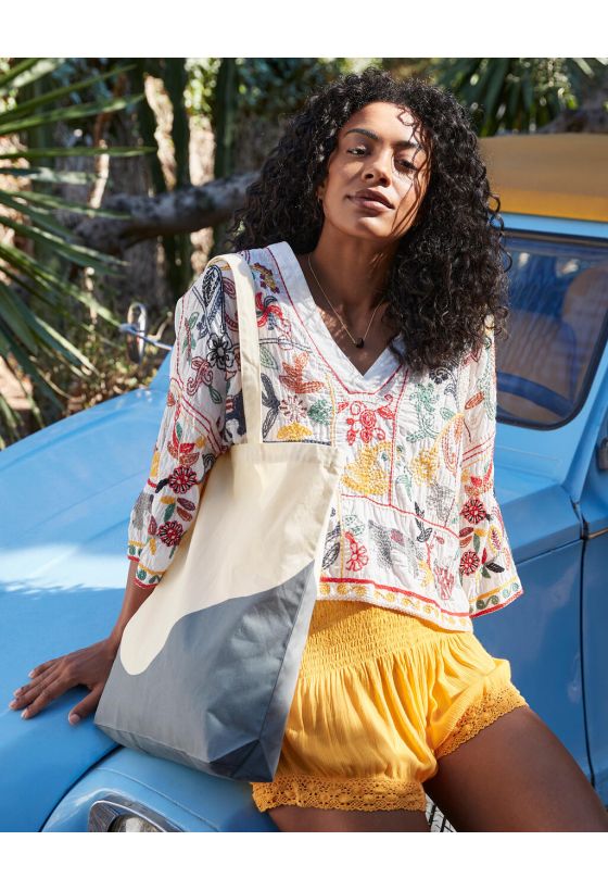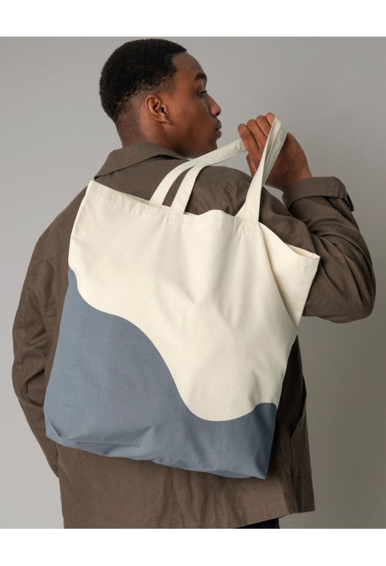 Organic Cotton Wave Print Maxi Tote Westford Mill W235 Natural/Blue Grey