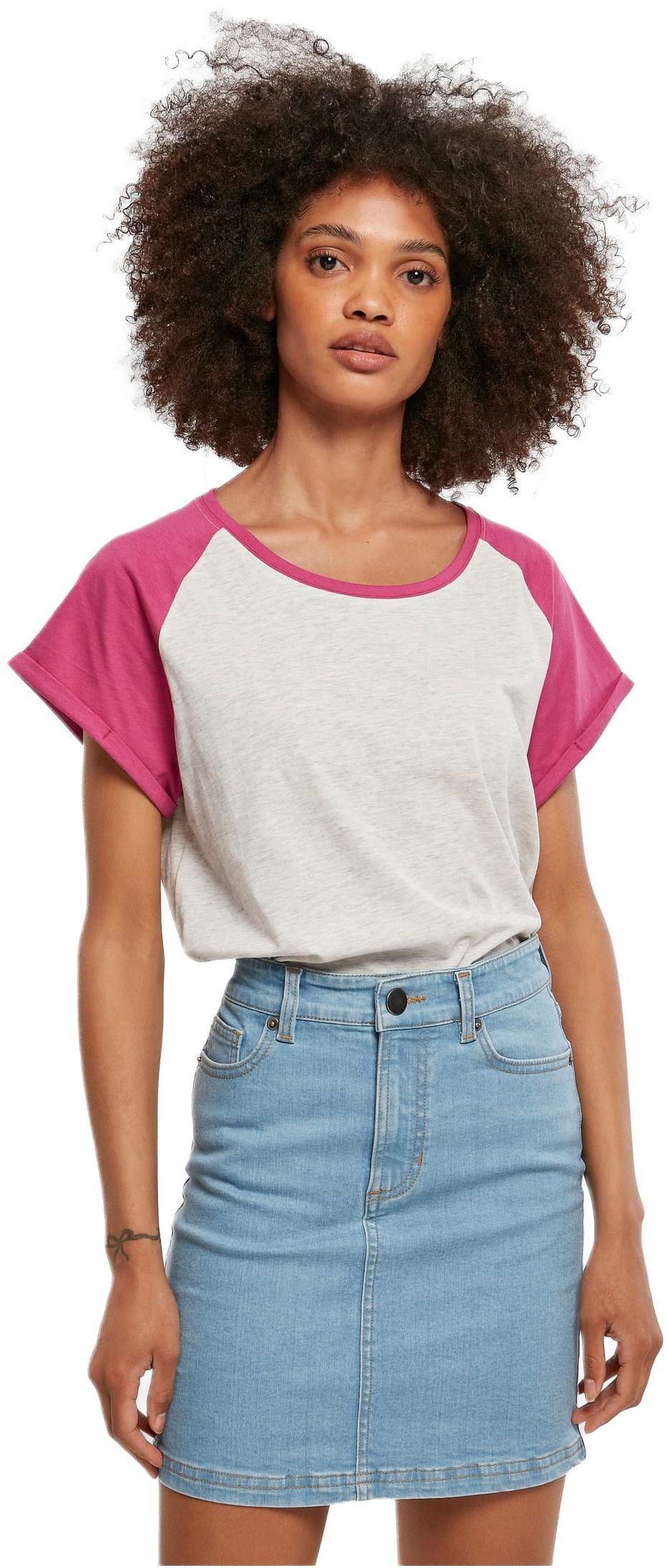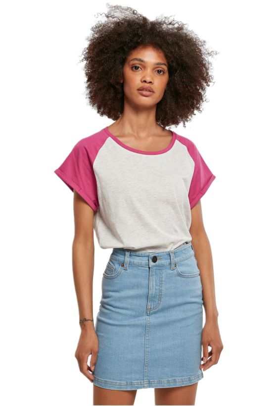 Ladies Contrast Raglan Tee Urban Classics TB1913-03686 lightgrey/brightviolet