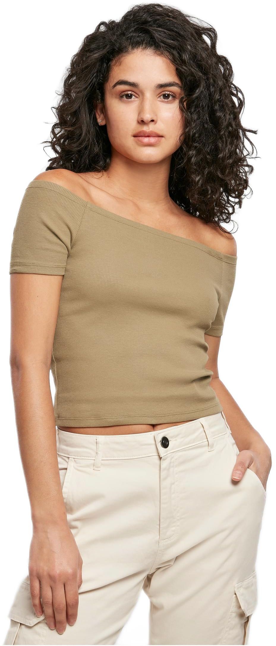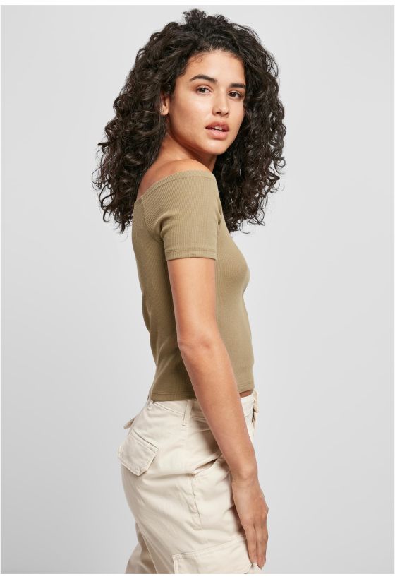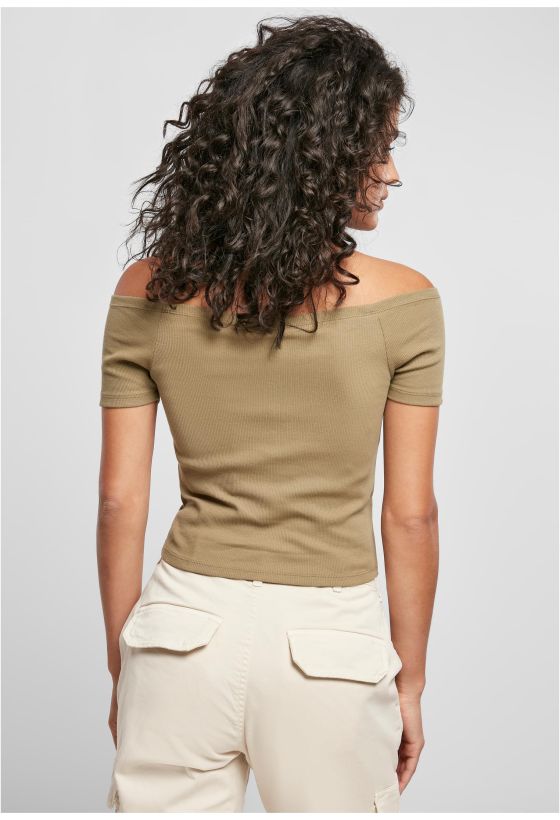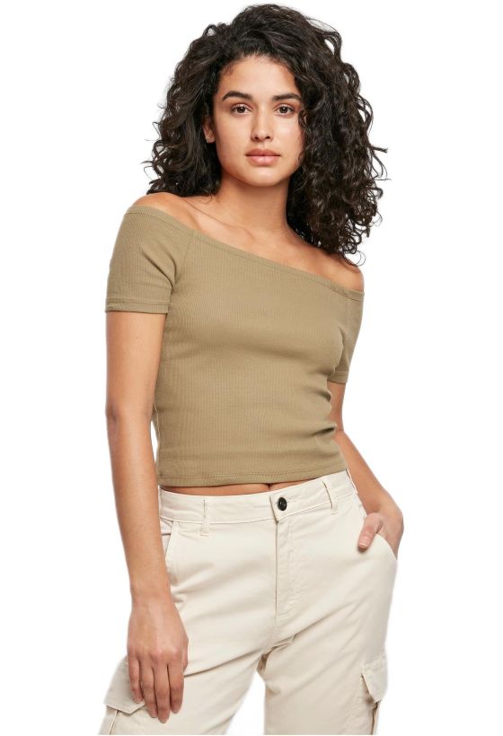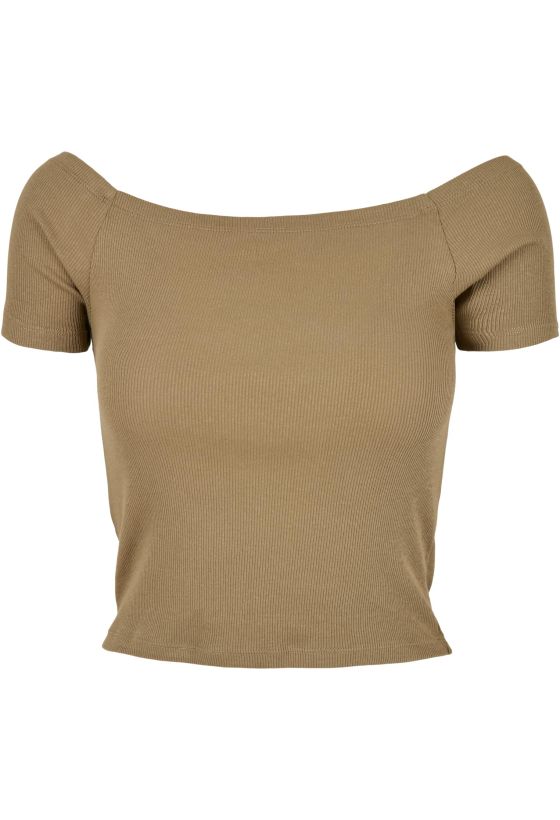 Ladies Off Shoulder Rib Tee Urban Classics TB1500-00472 khaki