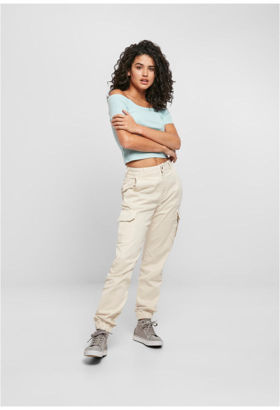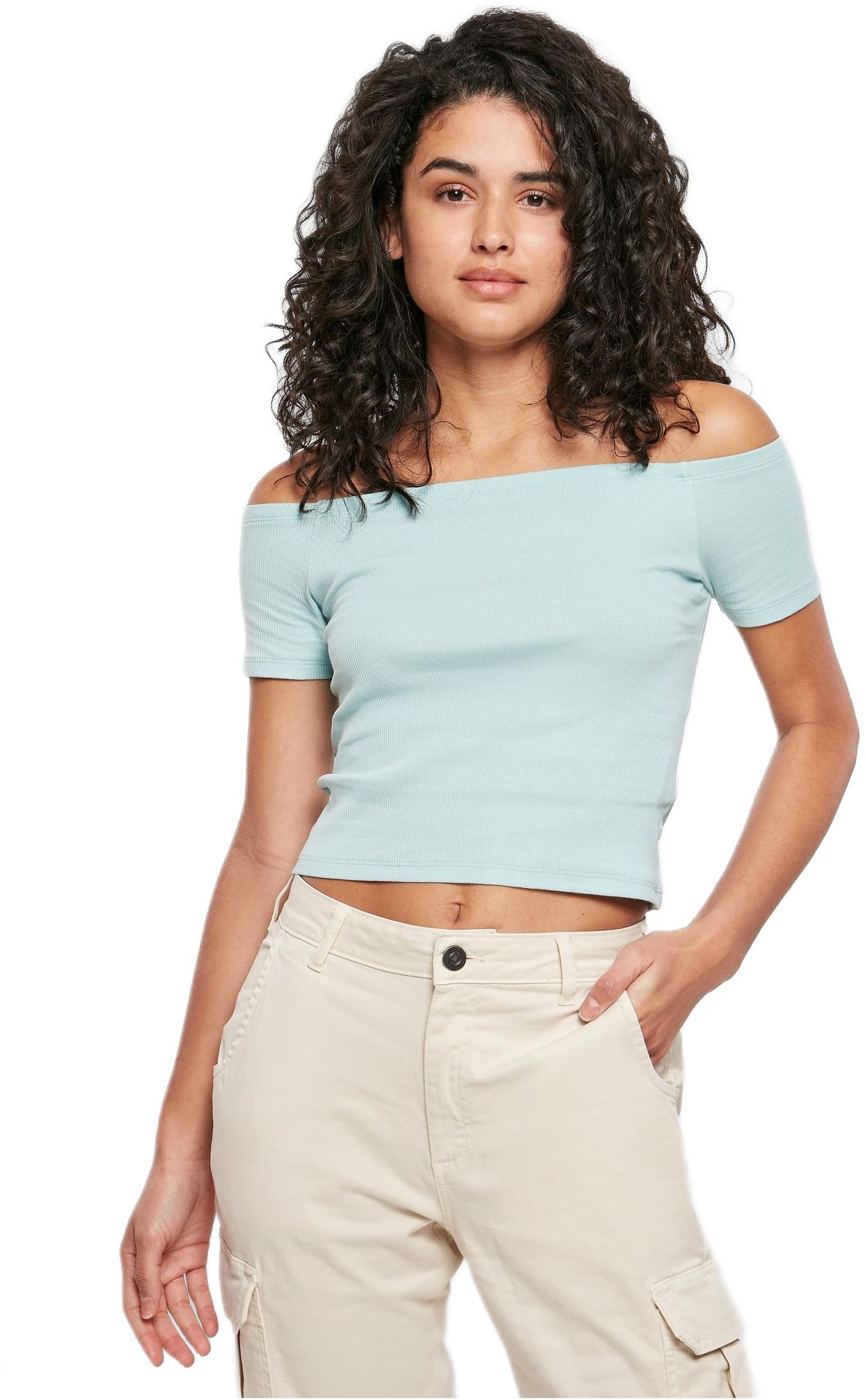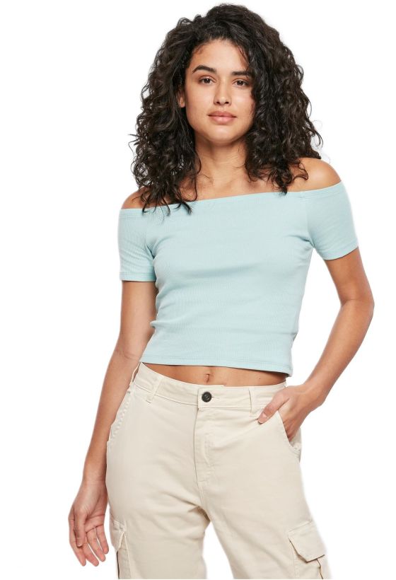 Ladies Off Shoulder Rib Tee Urban Classics TB1500-02909 seablue