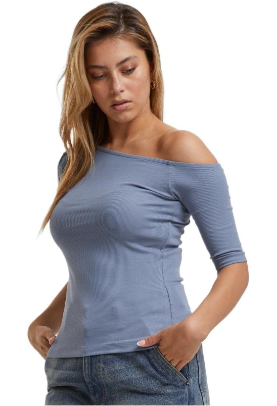 Ladies Organic Asymmetric Rib Tee Urban Classics TB7096-17040 cloudsky