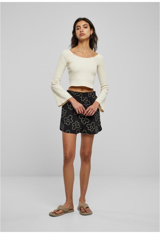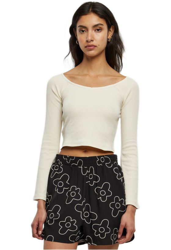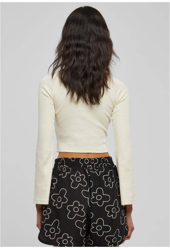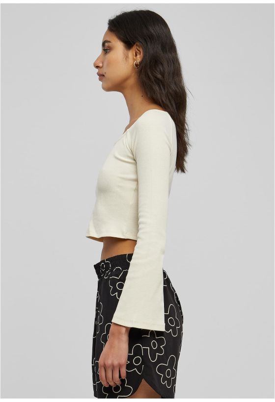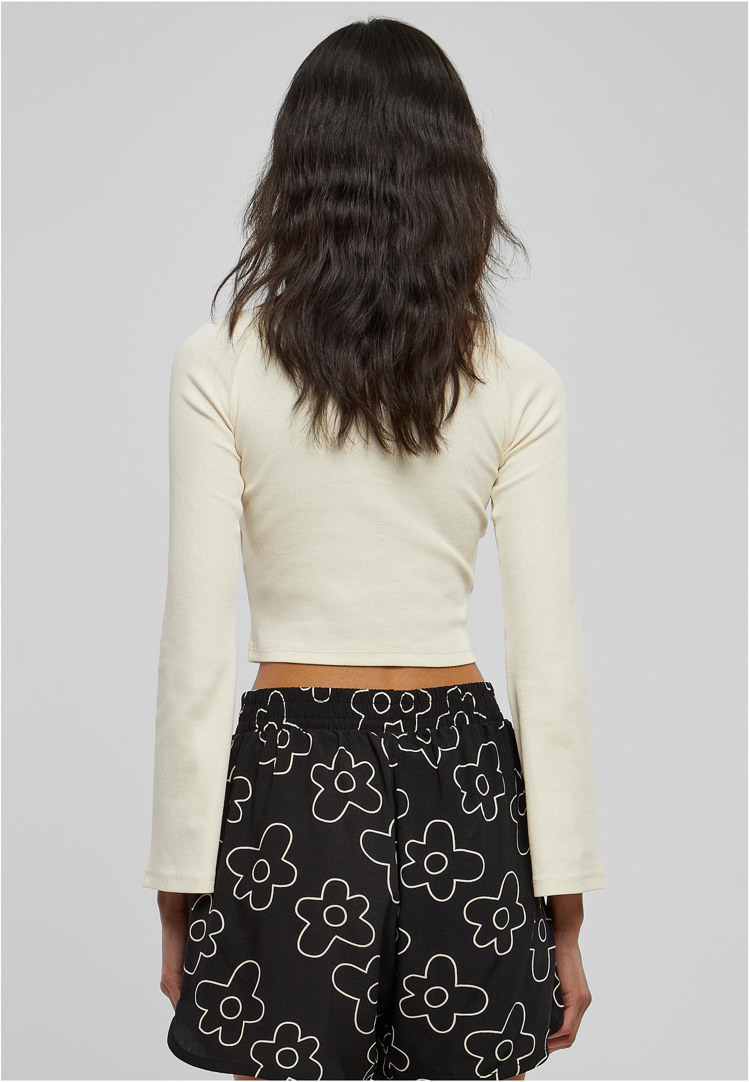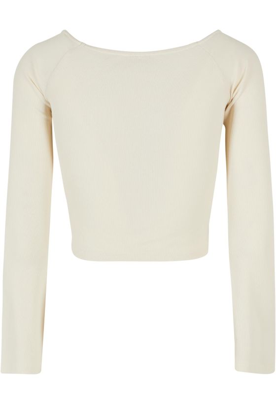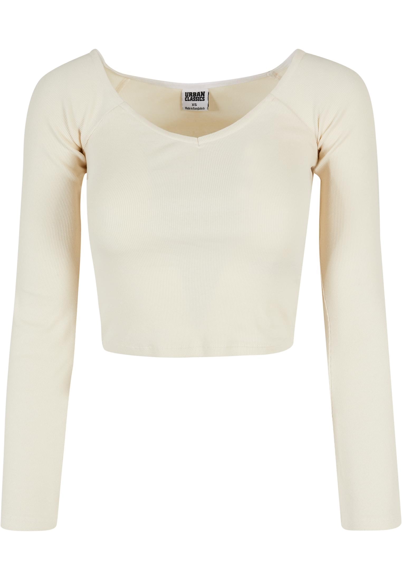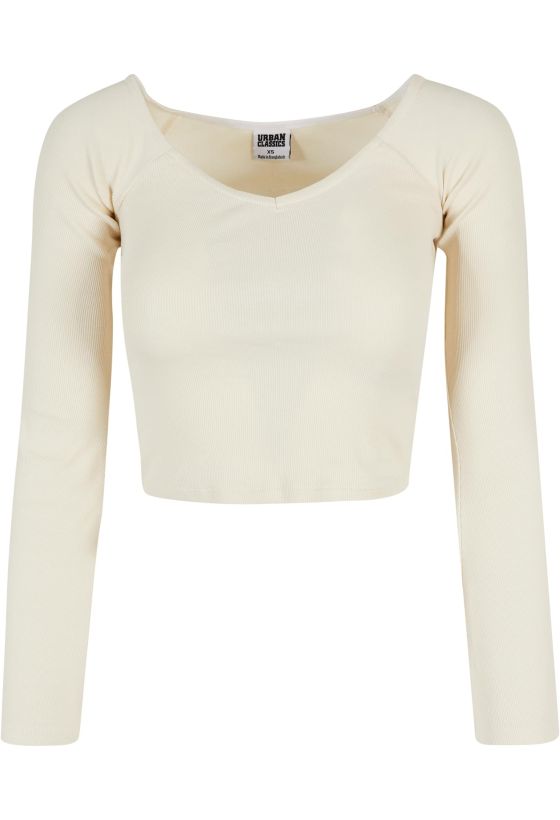 Ladies Short Rib Wide V-Neck Longsleeve Urban Classics TB5416-02903 whitesand