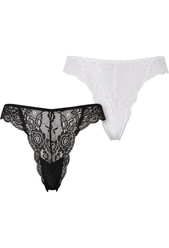Ladies Allover Lace Tanga 2-Pack Urban Classics TB7847A-03102 black+white