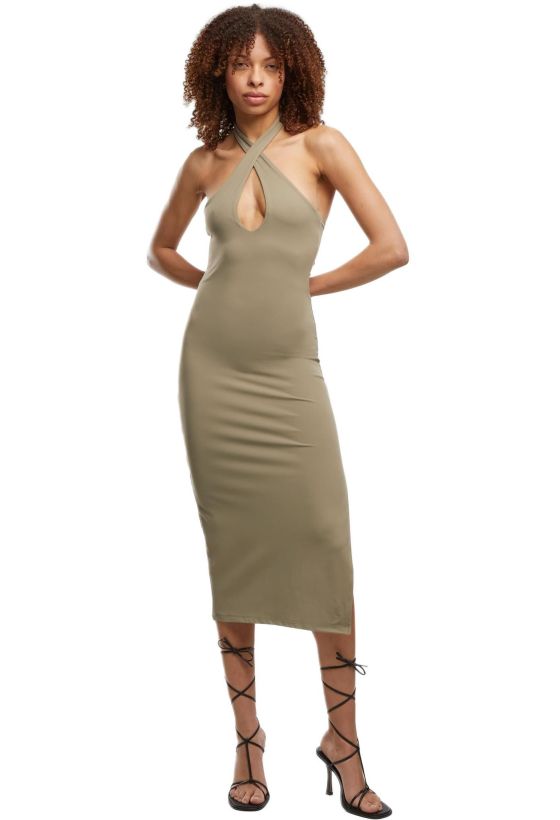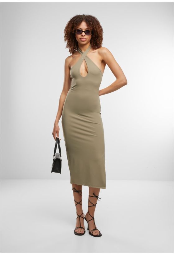 Ladies Crossed Neckholder Dress Urban Classics TB7499-18328 paleolive