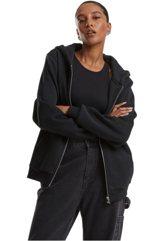 Ladies Fluffy Zip Hoody Urban Classics TB7286-00007 black