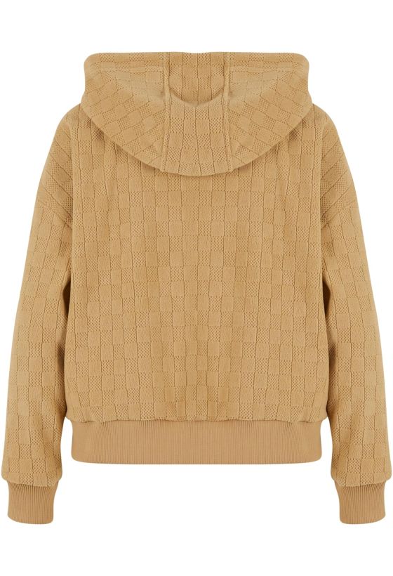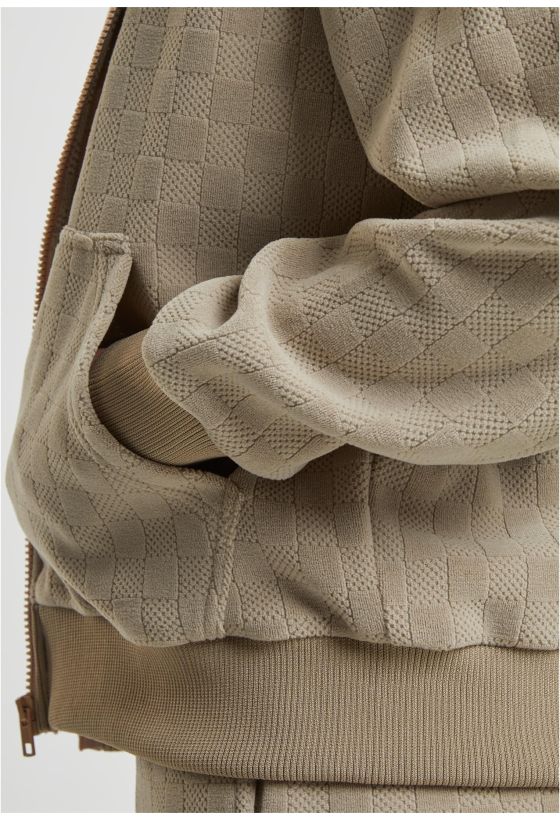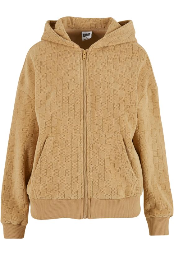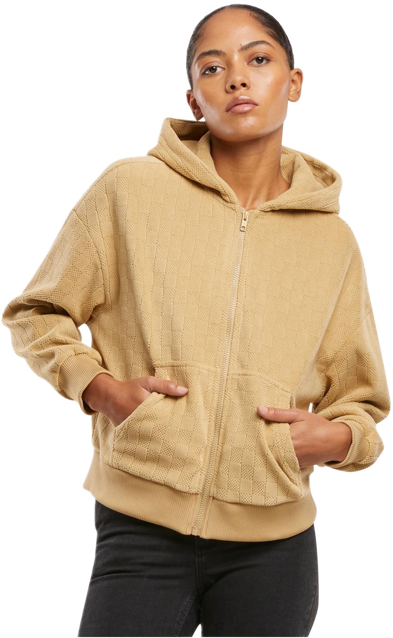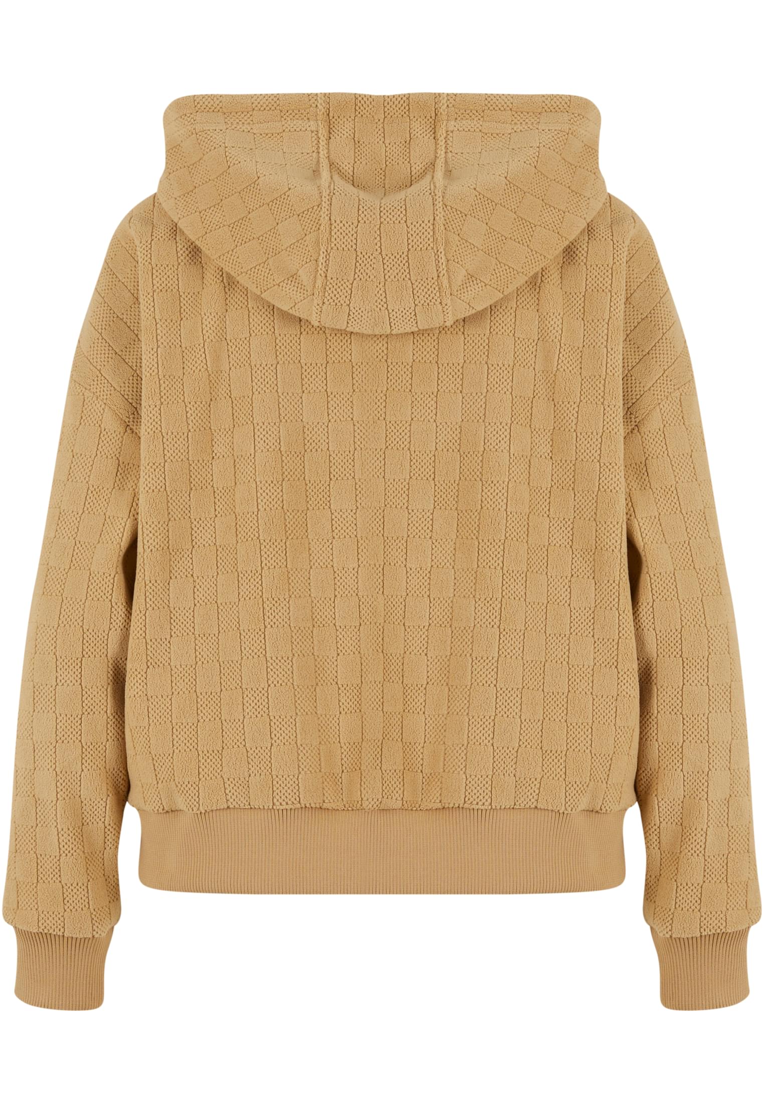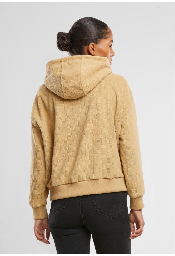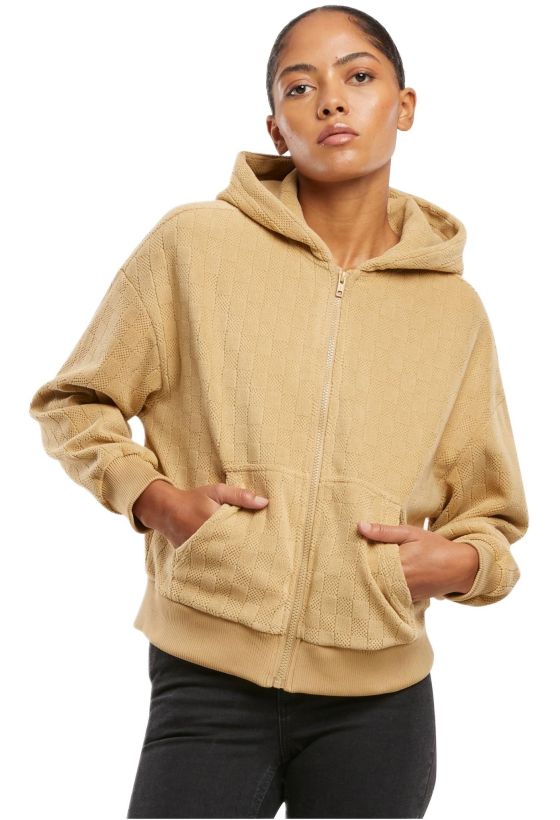 Ladies Jacquard Velvet Oversized Zip Hoody Urban Classics TB7121-03738 unionbeige
