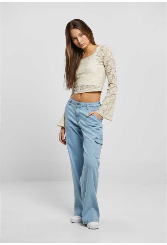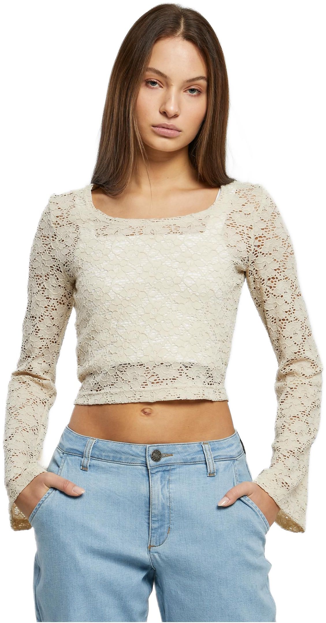 Ladies Cropped Lace Longsleeve Urban Classics TB5973-03680 softseagrass