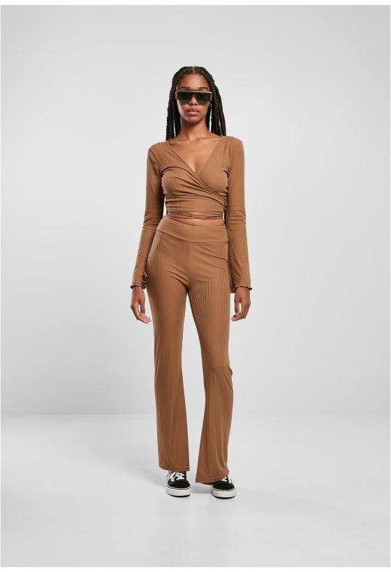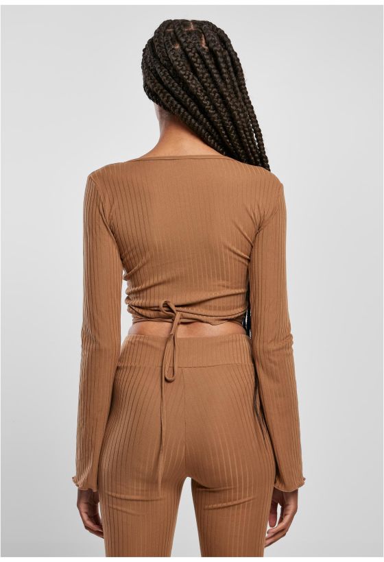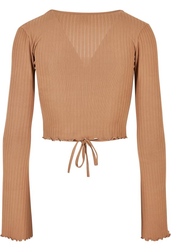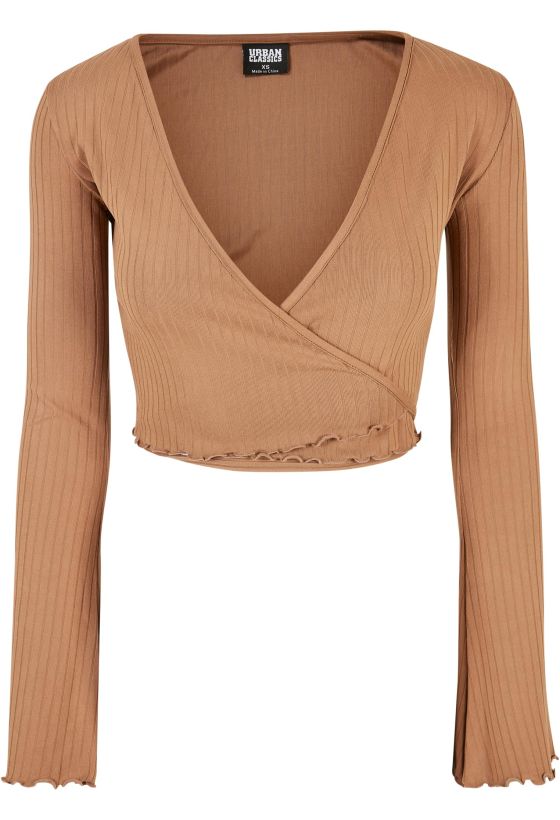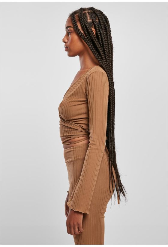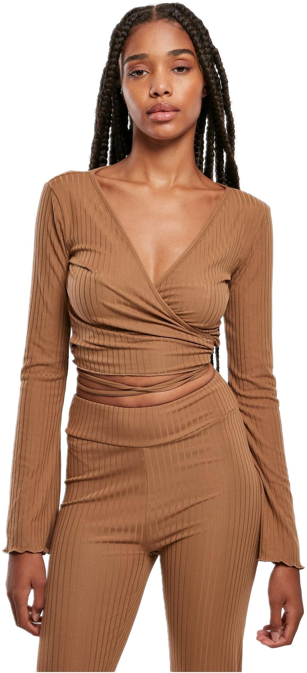 Ladies Cropped Rib Wrapped Longsleeve Urban Classics TB5067-01279 darktaupe