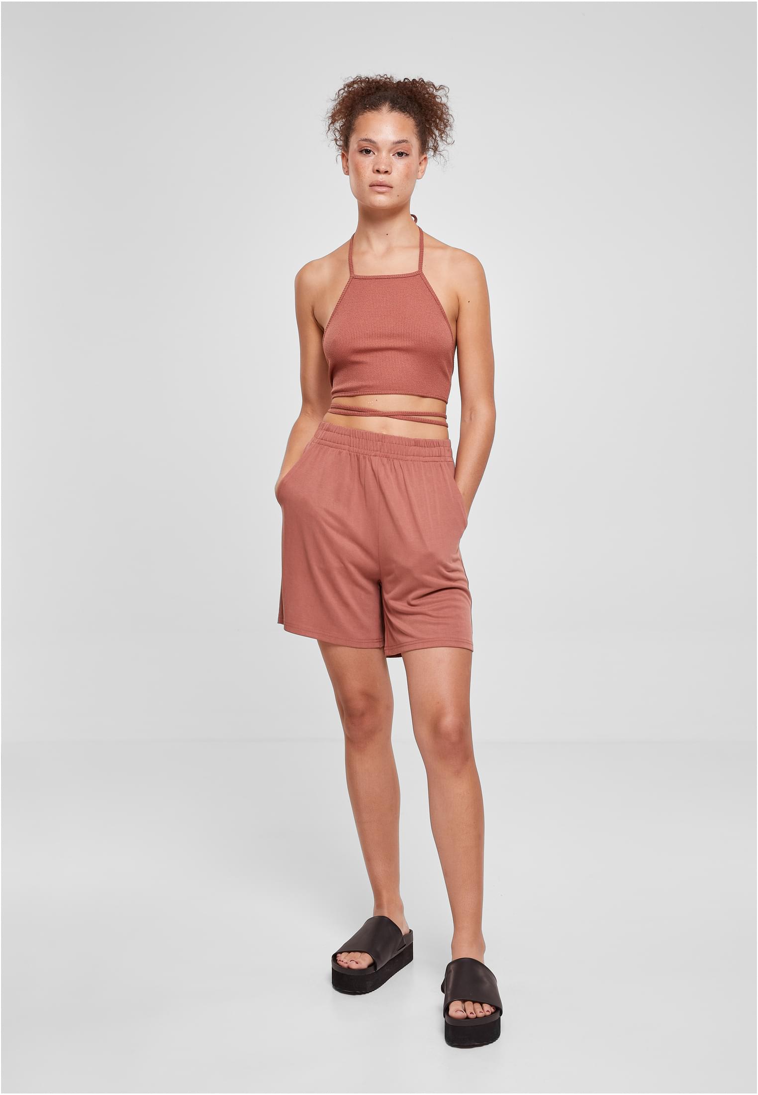 Ladies Rib Trapeze Cropped Top Urban Classics TB4786-04420 terracotta
