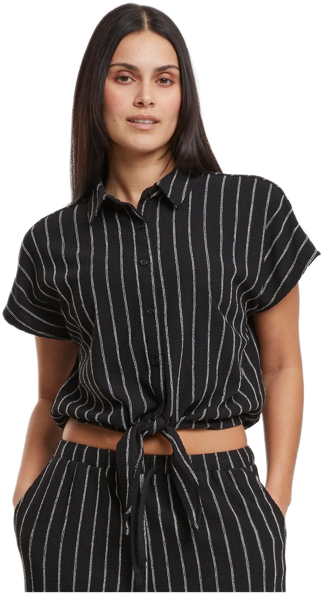 Ladies Structured Striped Tied Blouse Urban Classics TB7474-00851 black/offwhite