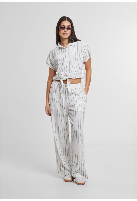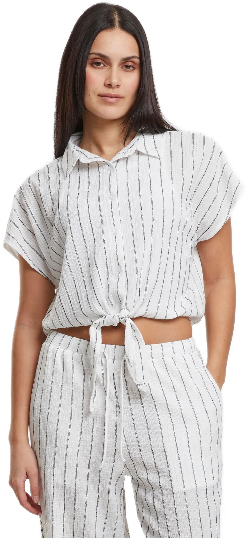 Ladies Structured Striped Tied Blouse Urban Classics TB7474-04577 offwhite/black
