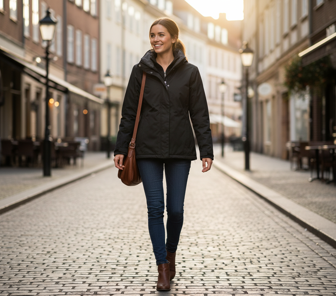 - Προσαρμοστικότητα: Ρυθμιζόμενες μανσέτες και τελείωμα με κορδόνι για προστασία από το κρύο.