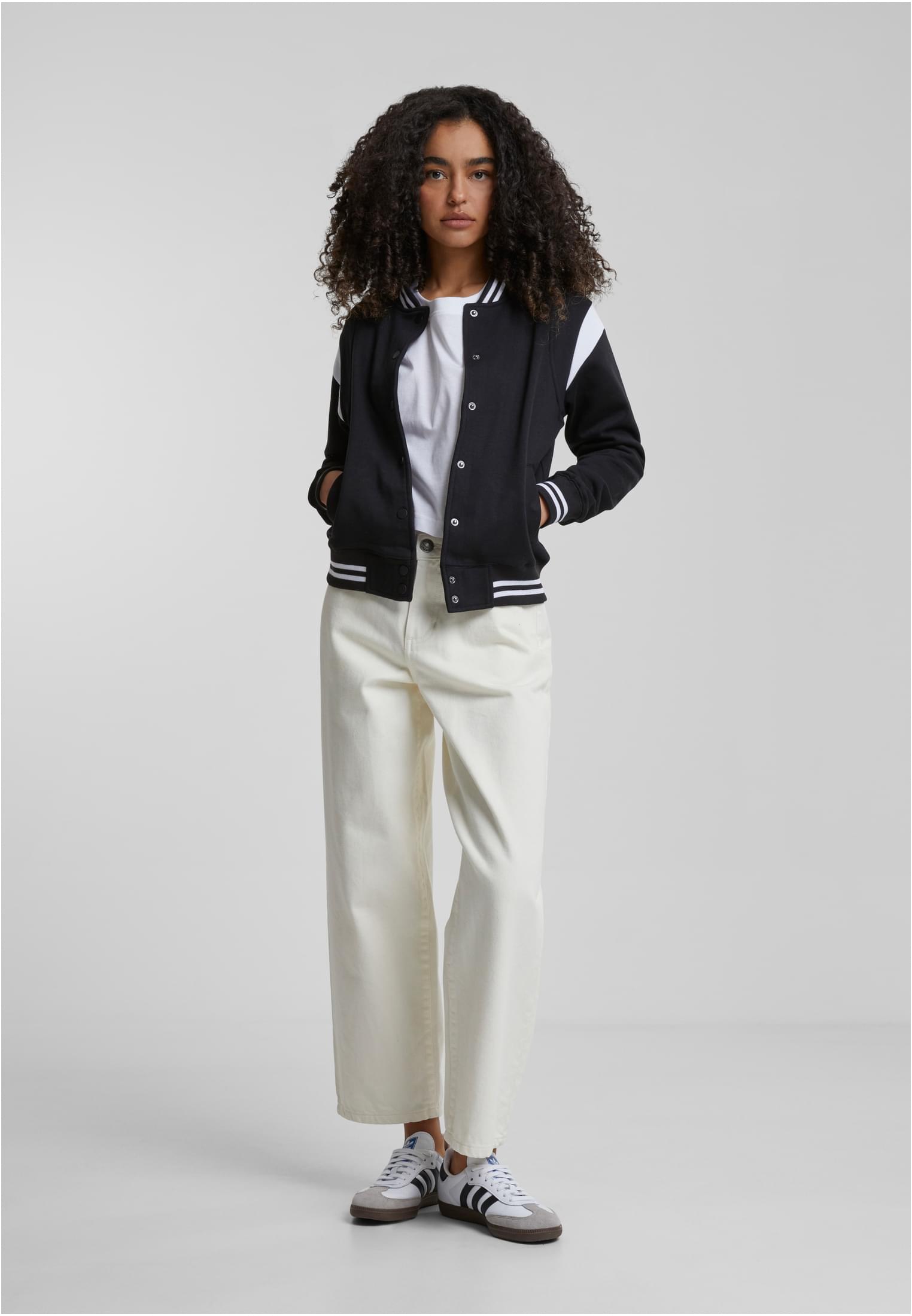 Ladies Inset College Sweat Jacket Urban Classics TB2618-00050 blk/wht