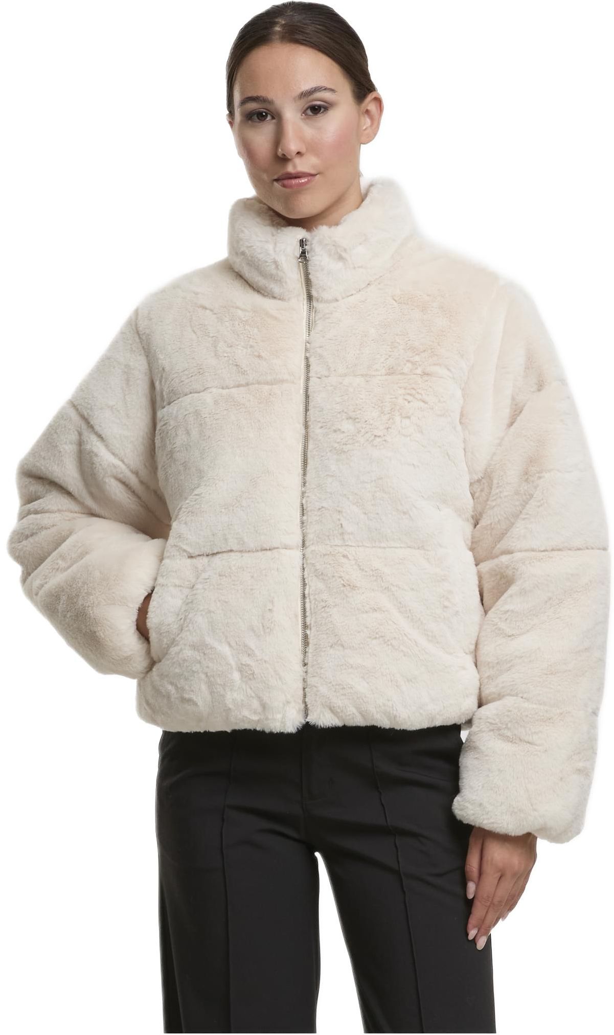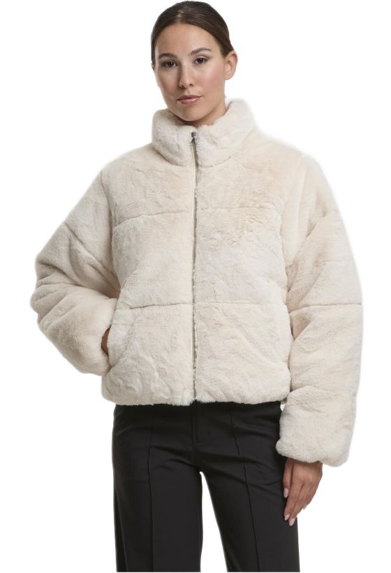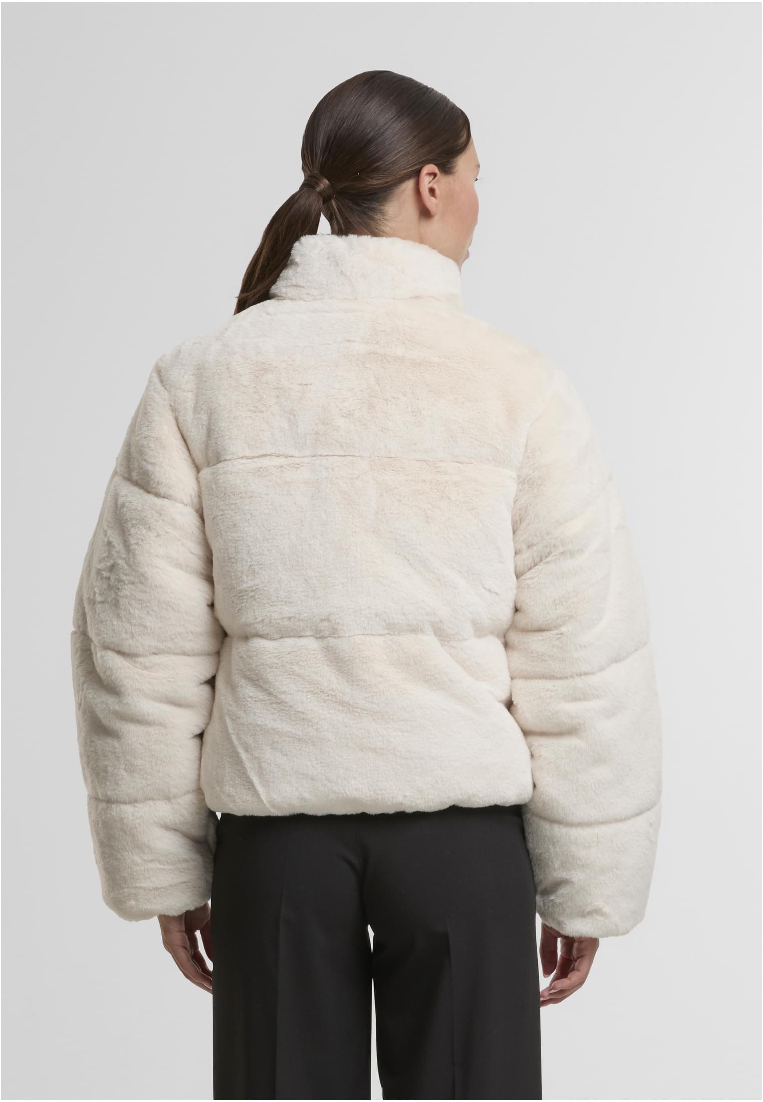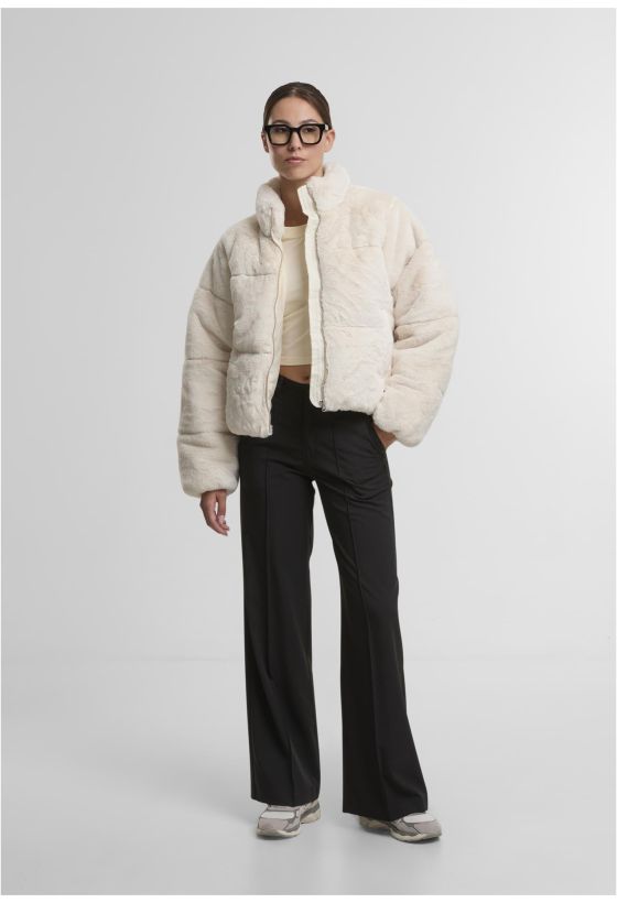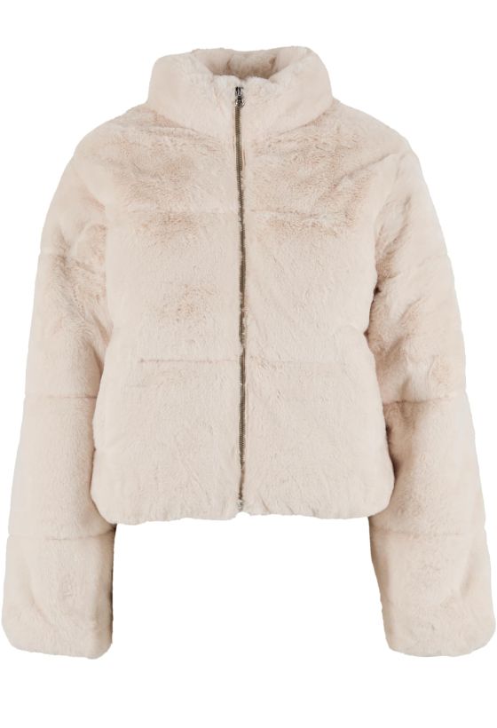 Ladies Short Faux Fur Puffer Jacket Urban Classics TB7935-02903 whitesand