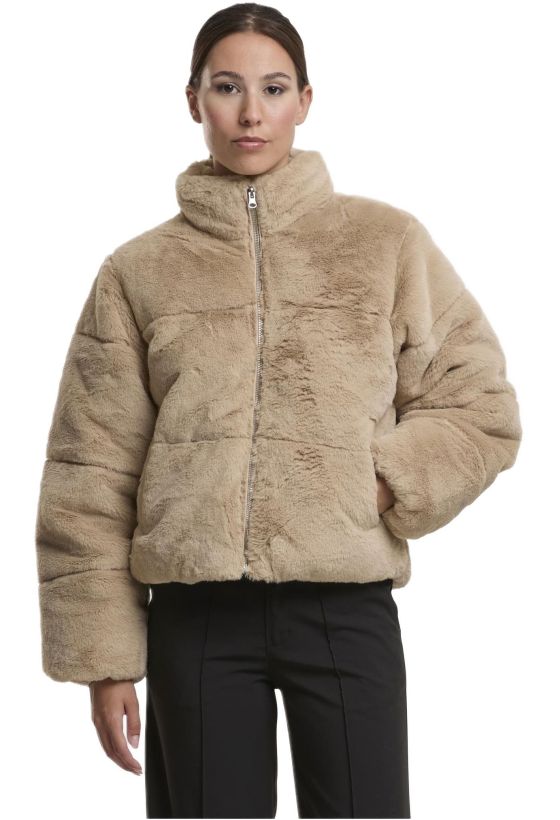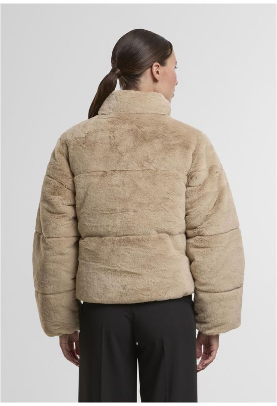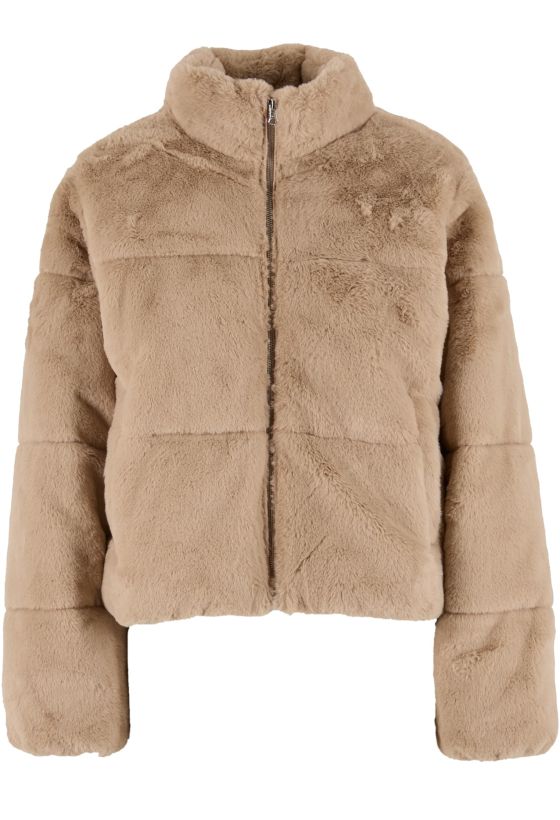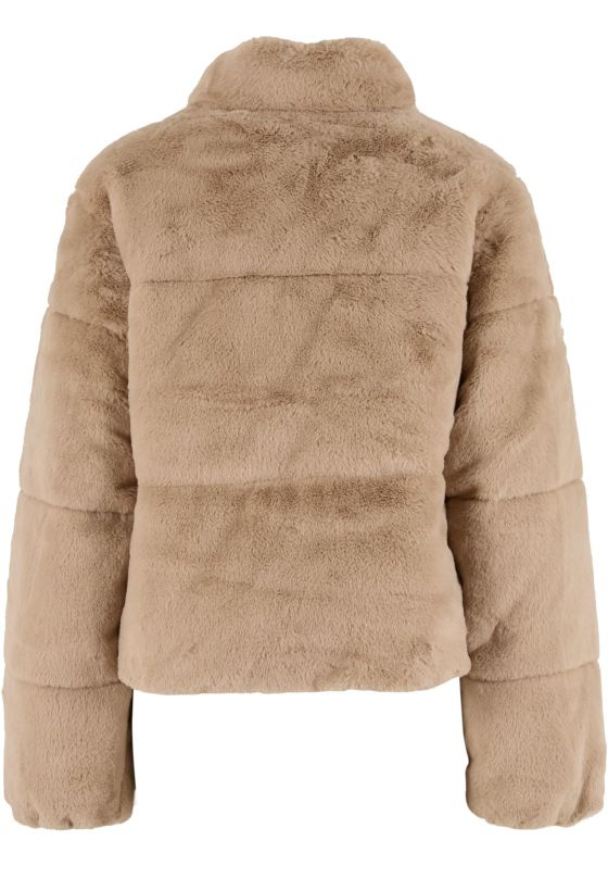 Ladies Short Faux Fur Puffer Jacket Urban Classics TB7935-04732 wetsand