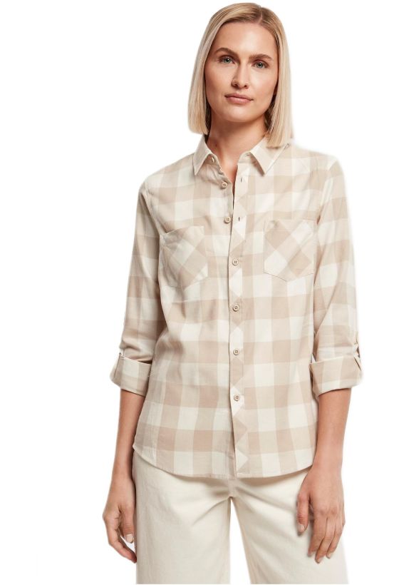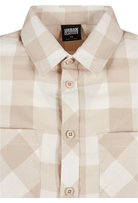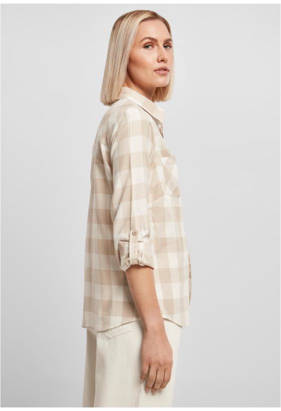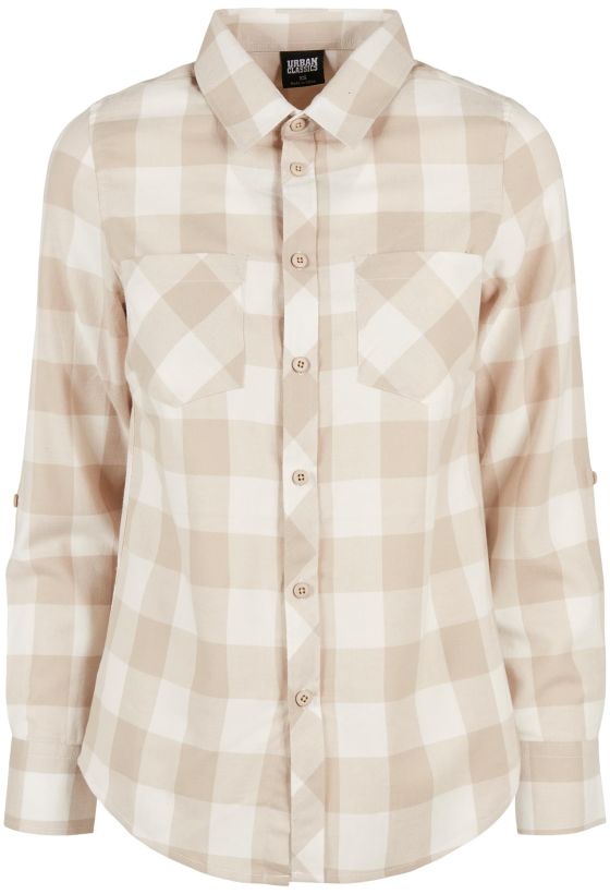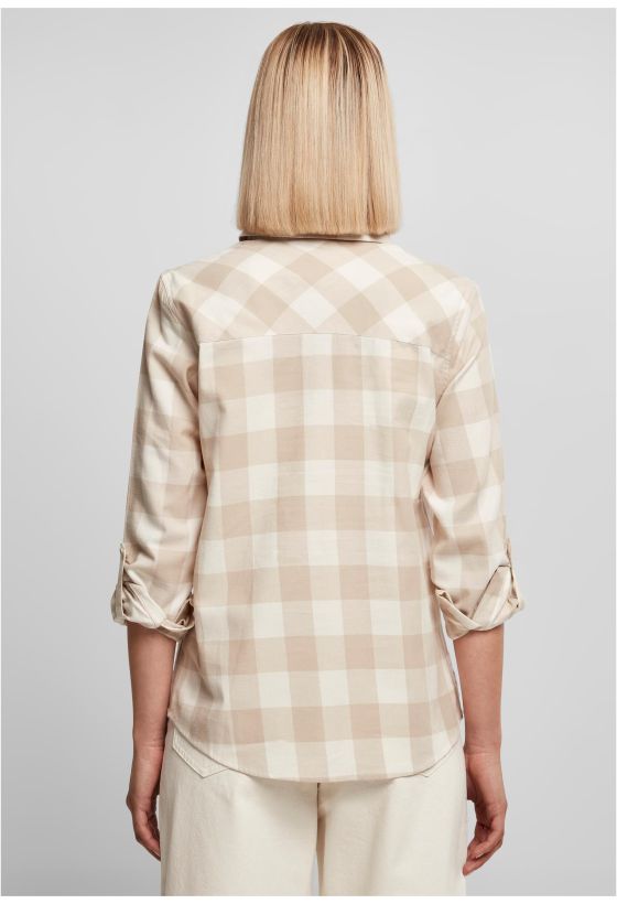 Ladies Turnup Checked Flanell Shirt Urban Classics TB1280-03501 whitesand/lighttaupe