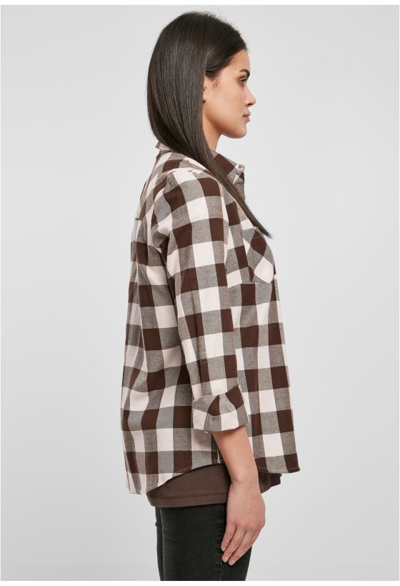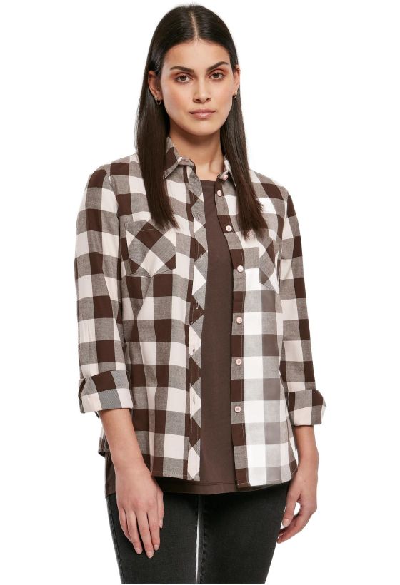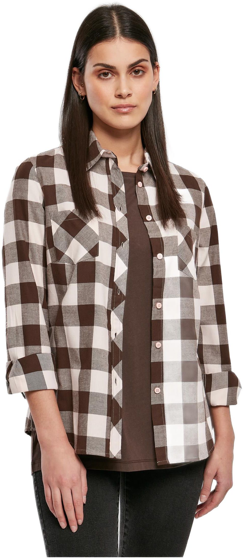 Ladies Turnup Checked Flanell Shirt Urban Classics TB1280-04017 pink/brown