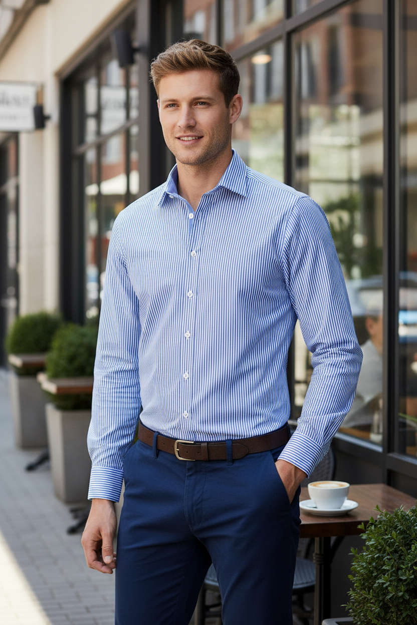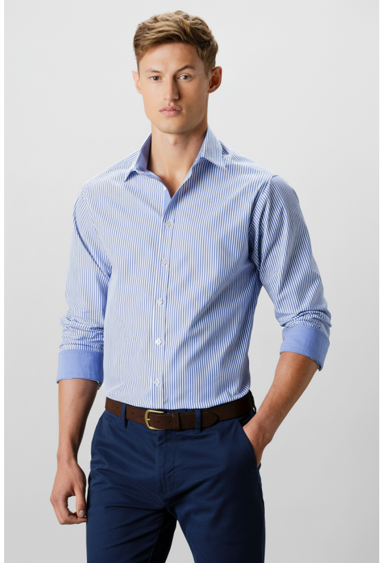 Ανδρικό πουκάμισο Tailored Fit Bengal Stripe Kustom Kit KK148 Mid Blue/White