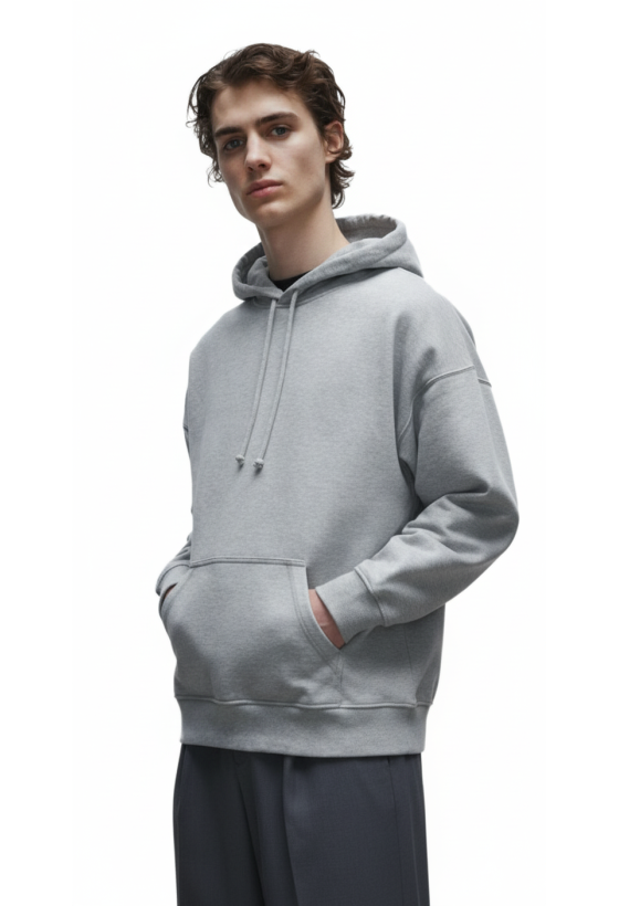 Boxy Hoodie Φούτερ True Blanks by H&M 1148751 Grey Melange