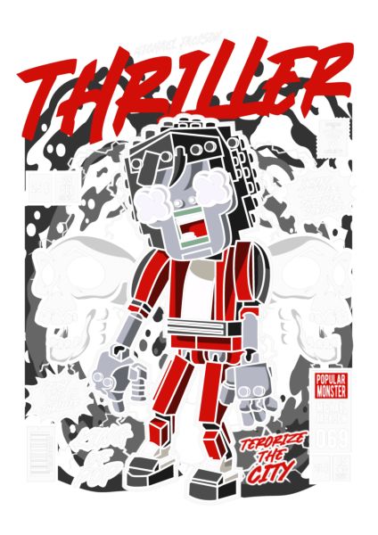 Lego/zombie εκδοχή του Michael Jackson από το "Thriller", σε κόμικ στυλ.