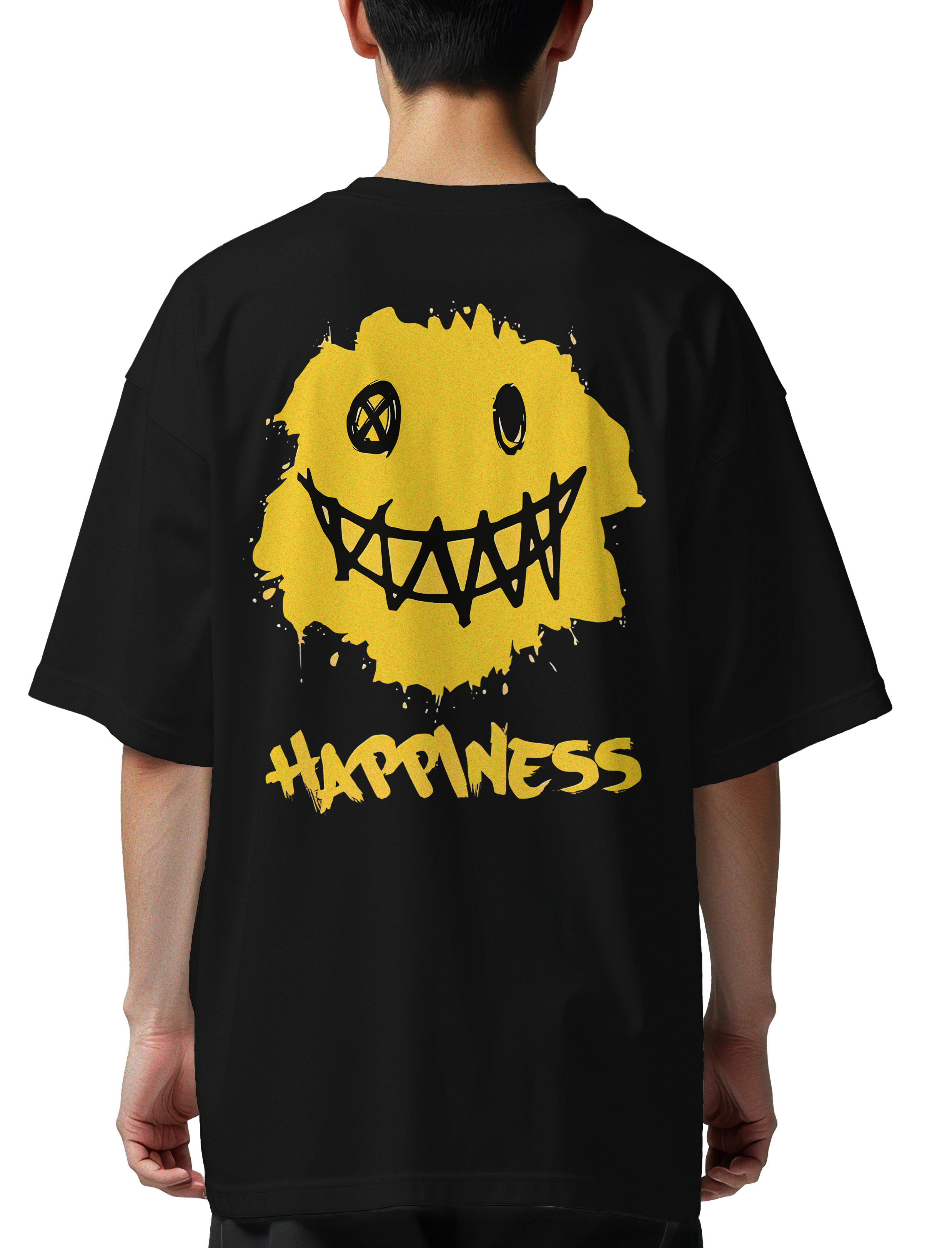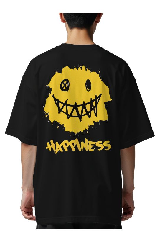 Oversized T-Shirt Smiley Face Pop Culture Black