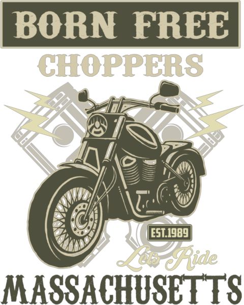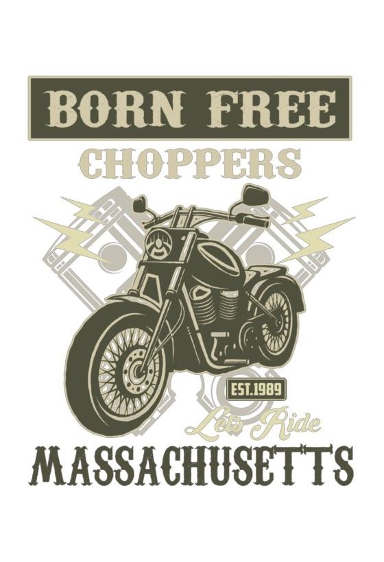 Vintage chopper με επιγραφή «BORN FREE CHOPPERS MASSACHUSETTS», έτος 1989.